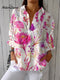 Women's Lovely Floral Art Print Casual Cotton Linen V-neck Shirt