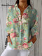 Women's Purple Elegant Flower Floral Print Casual Linen V-neck Shirt