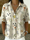 Women’s Flower Print Cotton Linen Polo Shirt