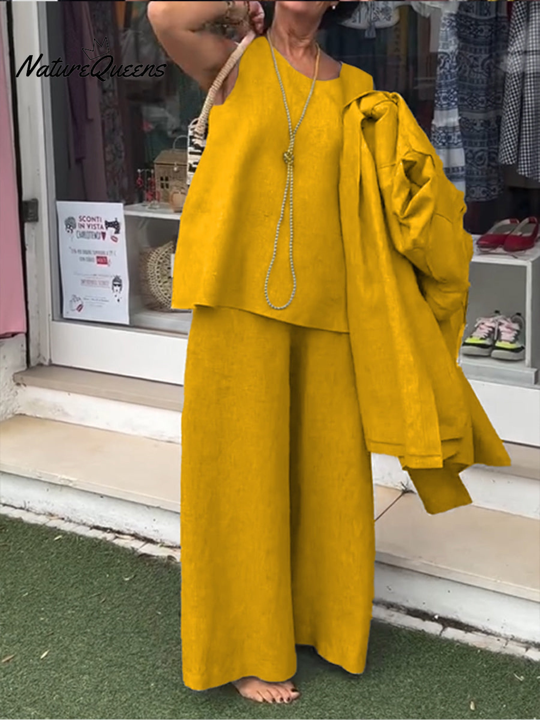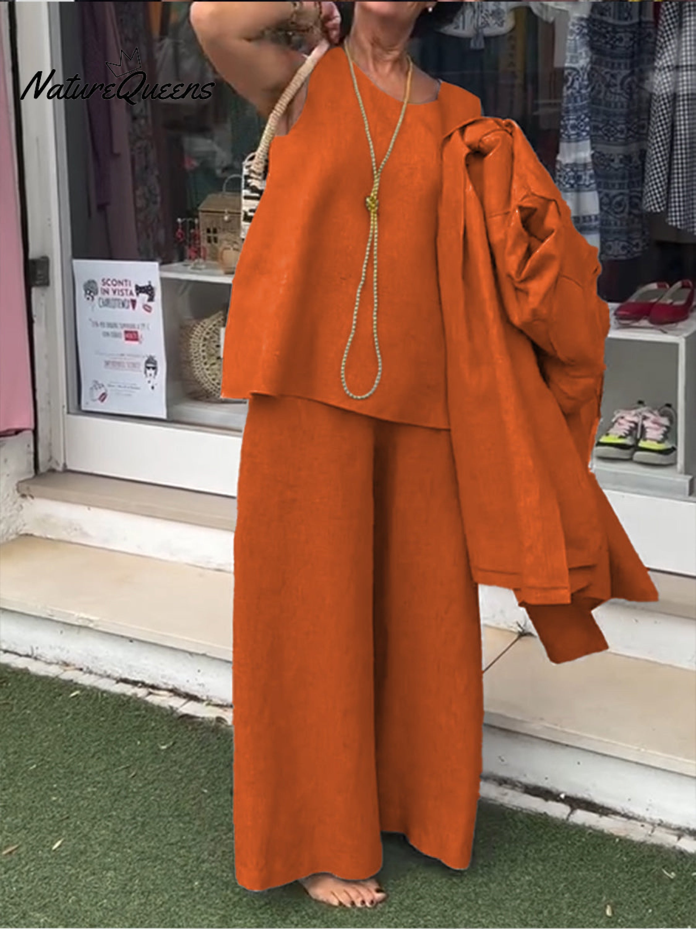 Women's Casual Cotton and Linen Sleeveless Top and Pants Two-piece Set