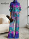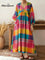 Women's Colorful Plaid Print V-neck Long Sleeve Casual Loose Cotton Linen Dress