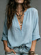 Women's Cotton Linen Solid Color Long Sleeves Shirt