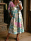 Women's Flower Print Casual Loose-fit Cotton-linen Dress With Lace Trim And Paneling