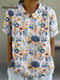 Women's Geometric Line Pattern Art Print Casual Cotton And Linen 3/4 Sleeve Shirt
