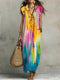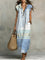 Women's Retro Geometric Pattern Art Print Casual Ruffled Stylish Cotton Linen Dress