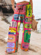 Women's Vintage Flowers Art Print Casual Linen V-neck Shirt