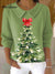 Women's Christmas Tree Art Print Casual Peter Pan Collar 3/4 Sleeve Sweater