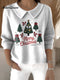 Christmas Santa Claus Decorations Women's Casual Peter Pan Collar 3/4 Sleeve Sweater