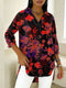 Denim Blue Geometric Line Decorative Pattern Women's Casual V Collar 3/4 Sleeve Shirt