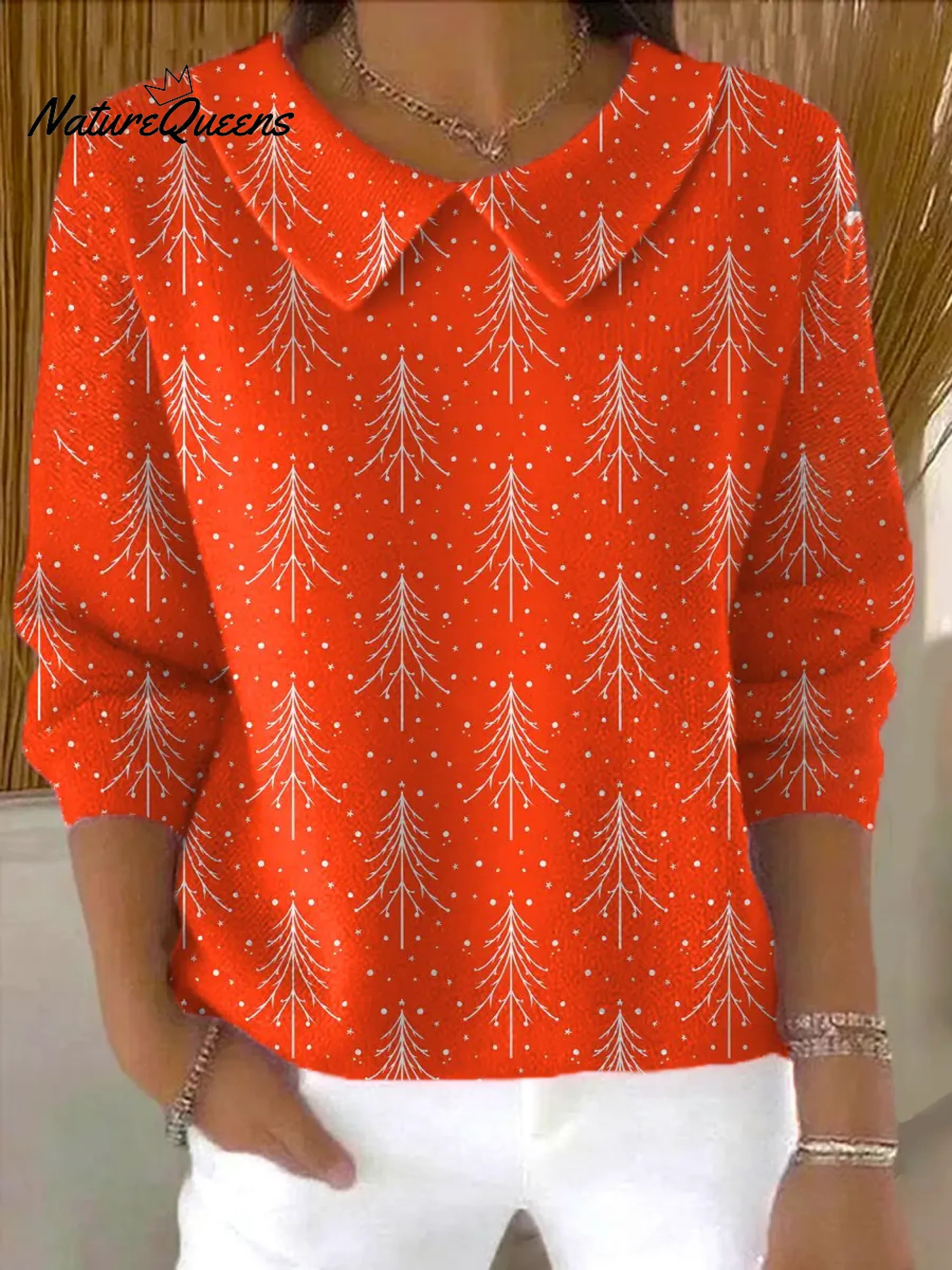 Women's Christmas Tree Print Casual Peter Pan Collar 3/4 Sleeve Sweater