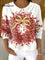Women's Christmas WreathPrint Casual Peter Pan Collar 3/4 Sleeve Sweater