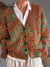 Beautiful Ethnic Geometric Floral Check Art Print Buttoned V-neck Cardigan Sweater
