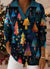Christmas Tree Color Art Pattern Art Polo Collar Shiny Loose Sweater Top