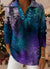 Christmas Tree Scenery Pattern Art Polo Collar Shiny Loose Sweater Top