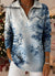 Christmas Tree Scenery Pattern Art Polo Collar Shiny Loose Sweater Top