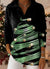 Christmas Trees Gradient Art Pattern Polo Collar Shiny Loose Sweater Top