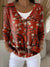 Ethnic Pattern Print Buttoned V-neck Cardigan Sweater