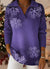 Purple Snowflake Print Lapel Casual Knit Sweater