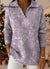 Vintage Purple Little Flower Print Lapel Casual Knit Sweater