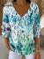 Women's Blue Ink Watercolor Art Pattern Art V-neck Solid Color Loose Shiny Sweater