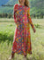 Women's Boho Vintage Flower Art Printed Long-sleeved Casual Dress