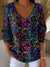 Women's Christmas Color Gradient Art Pattern Art V-neck Solid Color Loose Shiny Sweater