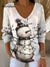 Women's Christmas Snowman Colors Art Pattern Art V-neck Solid Color Loose Shiny Sweater