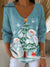 Women's Christmas Tree Cute Snowman Art Pattern Art V-neck Solid Color Loose Shiny Sweater