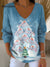 Women's Christmas Tree Cute Snowman Art Pattern Art V-neck Solid Color Loose Shiny Sweater