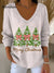 Women's Christmas Tree Pattern Art Print Casual V-Neck Sweater