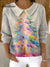 Women's Christmas Tree Print Casual Peter Pan Collar 3/4 Sleeve Sweater