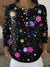 Women's Color Flowers Black Pattern Art Print Buttoned Cardigan Sweater
