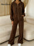 Women's Corduroy Zipper Hooded Sweatshirt and Pants Two-Piece Set