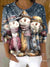 Women's Cute Christmas Snowman Print Casual Peter Pan Collar 3/4 Sleeve Sweater