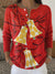 Women's Multicolor Christmas Bell Geometric Pattern Art Print Buttoned Cardigan Sweater