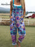 Women's Patchwork Floral Art Print Casual 100% Cotton Wide Leg Jumpsuit