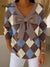 Women's Plaid Print Bowknot V-Neck Long Sleeve Casual Pullover Sweater