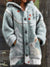 Women's Retro Christmas Snow Cute Animals Rabbit Pattern Art Print Casual Plush Warm Coat