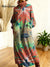 Elegant Art Print Color Block Trim V-neck Midi Dress