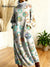 Elegant Art Print Color Block Trim V-neck Midi Dress
