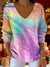 Women's Shiny Color Gradient Art Pattern Art Print V-neck Solid Color Loose Shiny Sweater
