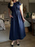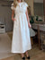Women's Solid Color Round Neck Short Sleeve Elastic Waist Casual Cotton Dress