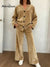 Women's Solid Color V-neck Casual Loose Cardigan High Waist Wide-leg Pants Set