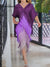 Women's V-neck Color-blocked Three-quarter Sleeve Casual Loose Tassel Dress