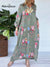 Women's V-neck Long Sleeve Retro Floral Print Casual Cotton and Linen Dress