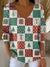 Women's Vintage Christmas Tree Plaid Painting Art Print Casual Pullover Sweater