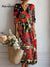 Women's Vintage Flower Art Print Linen Pocket Dress