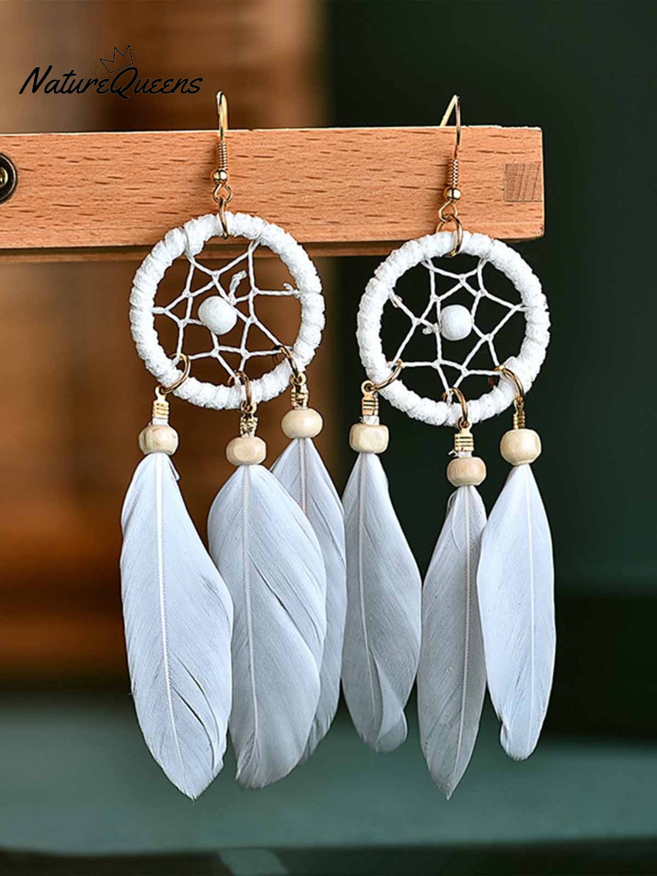 Dream Catcher Long Coffee Feather Earrings