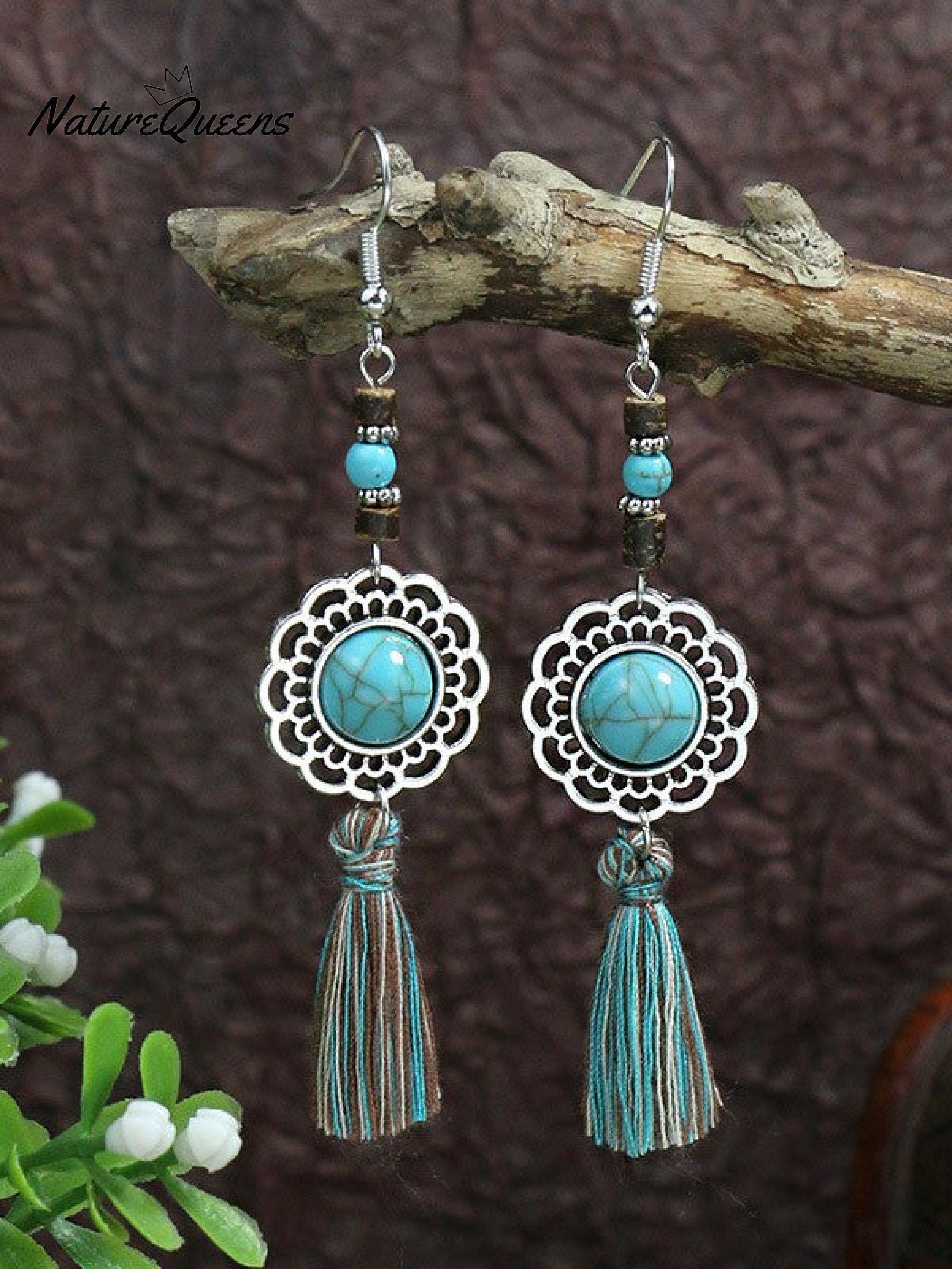 Silver Geometric Metal Tassel Earrings Vintage Earrings