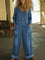 Casual V-neck Button-up Denim Jumpsuit Overalls